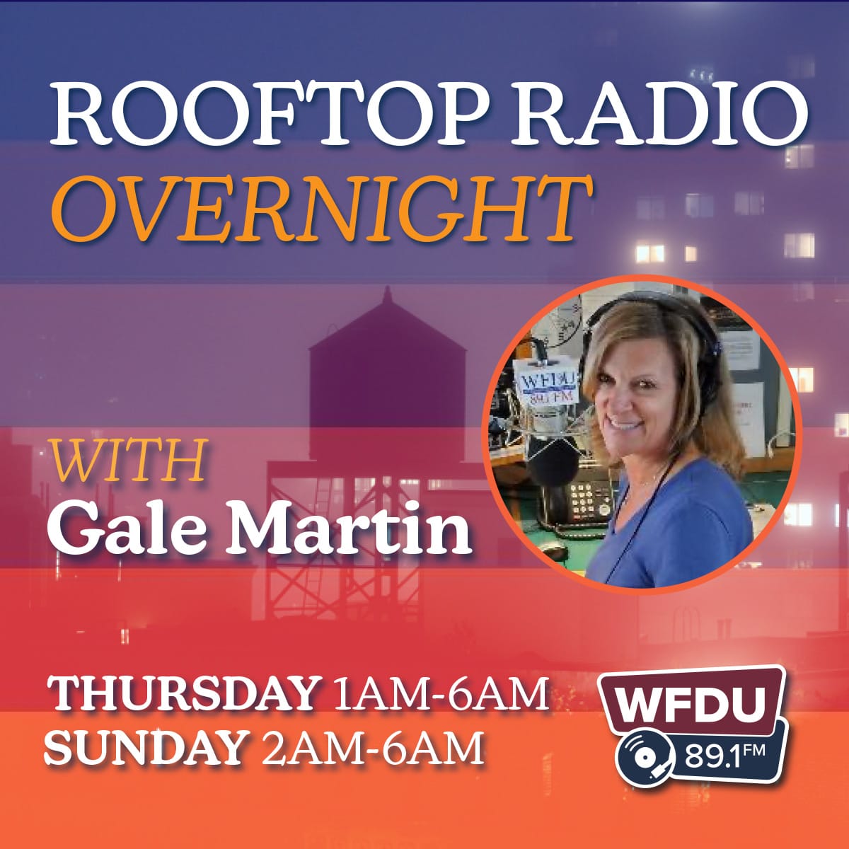 And for the really early crowd, we’ve got you covered too. Every Thursday at 1am, Gale Martin is on the air, keeping you company all the way until 6am, when Brodsky takes over!